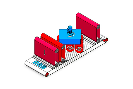 Stations de travail: R + P + R (ceinture large + brosses à rouleaux + ceinture large)